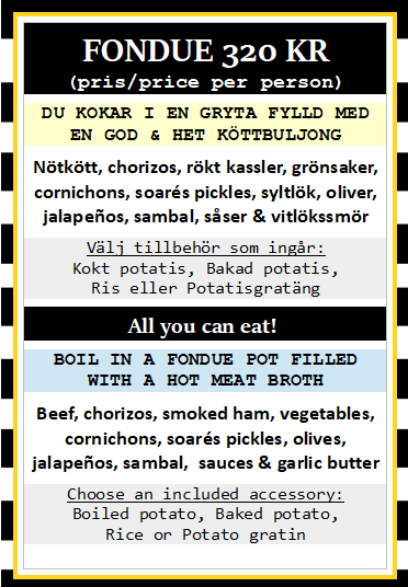 Priserna är per person / Menu prices per person. All you can eat!